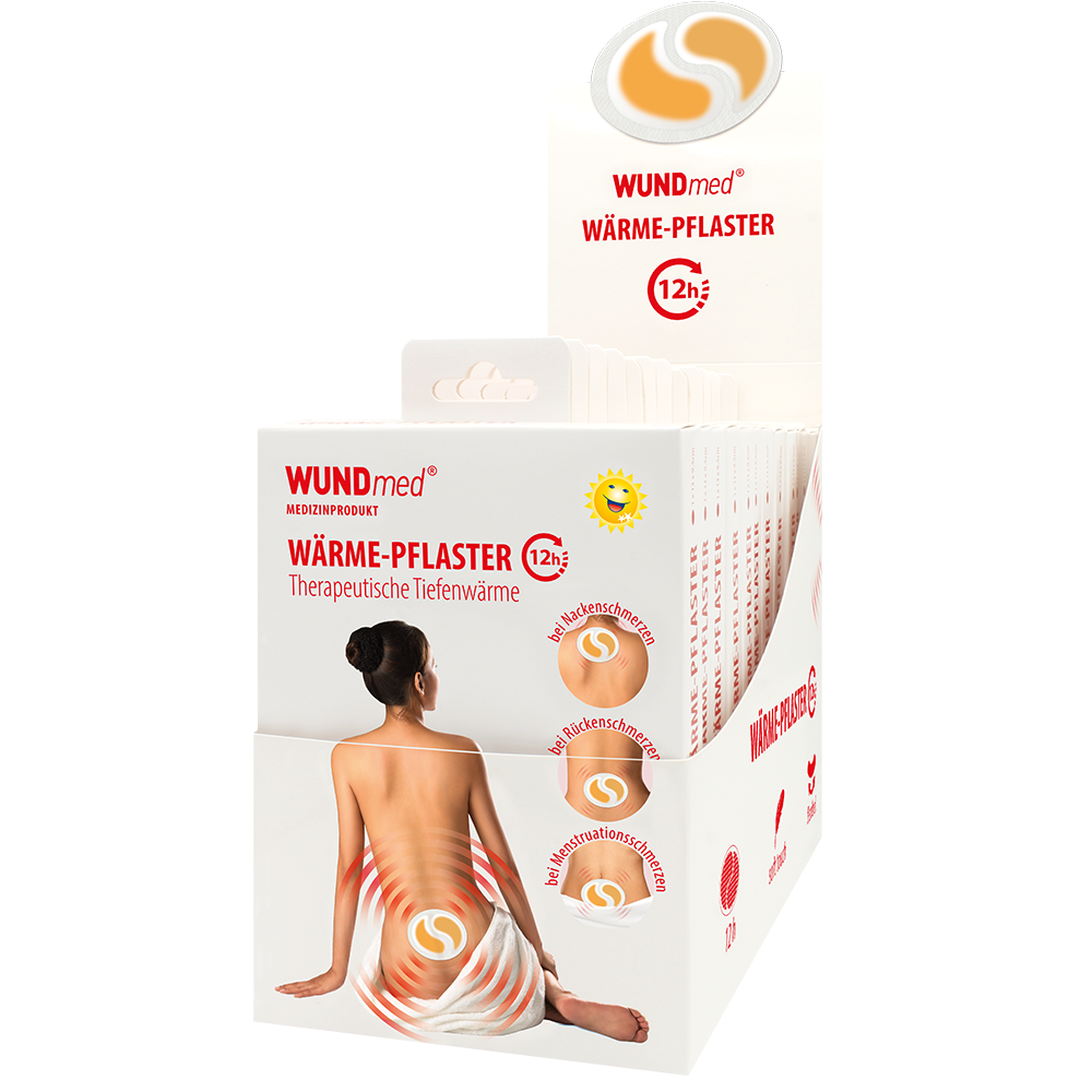 Das 12-teilige WUNDmed Wärme-Pflaster Display wird verkaufsfertig geliefert.